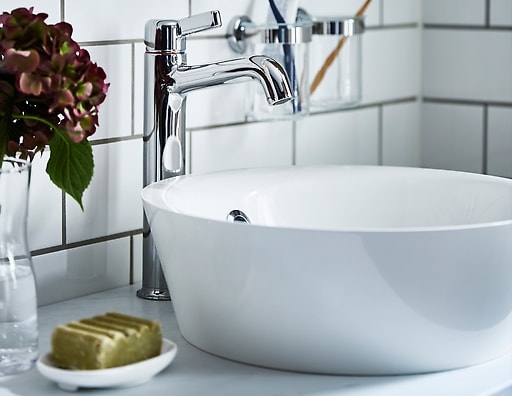 Plain simple round table top basin can also be a good choice for some. The above image shows a simple plain white colour washbasin mounted on top of a table. All that glitters is not a gold, some time simple things make beautiful impact.