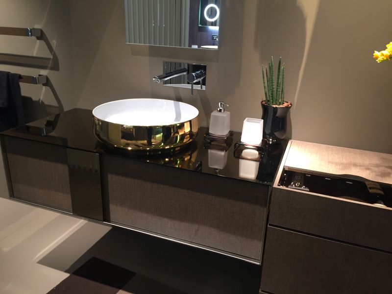 Round Table top washbasin looks great and this golden washbasin can make your interior glamorous.